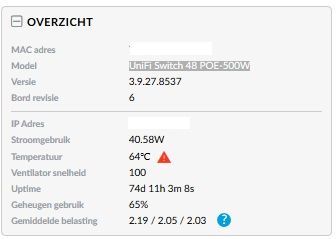 Unifi 24 port non poe switch temperatures i just bought a new non poe 24 port unifi switch and i ve noticed that the temperature is a bit high with my controller showing it hangs around 66 68c.